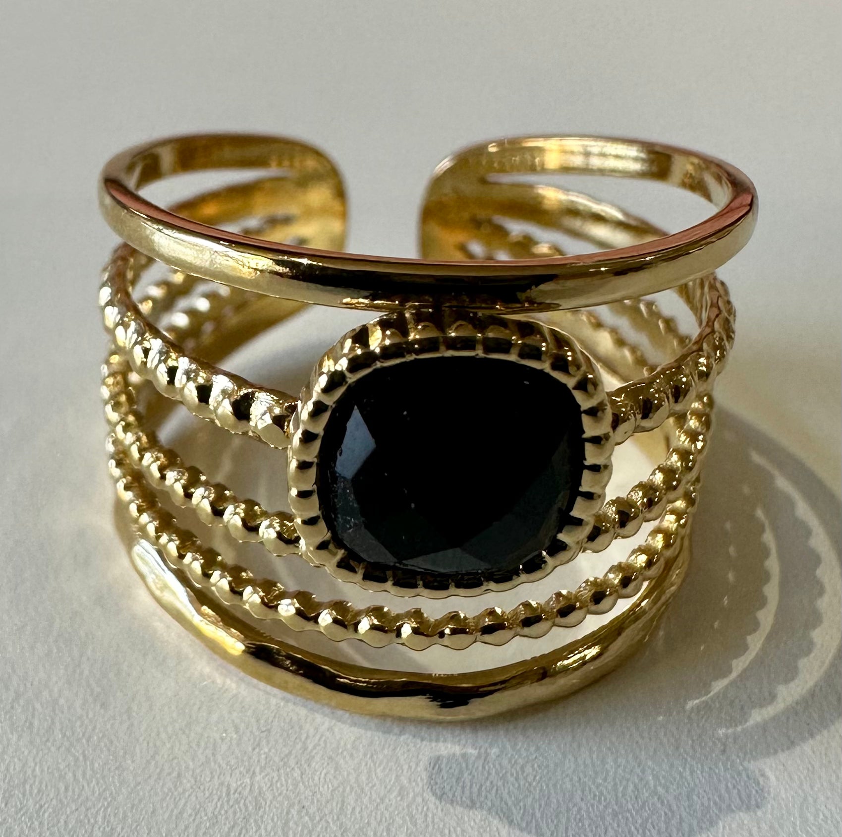 Bague en acier inoxydable avec pierre Agate Noire, Apatite, Jade blanc ou Labradorite