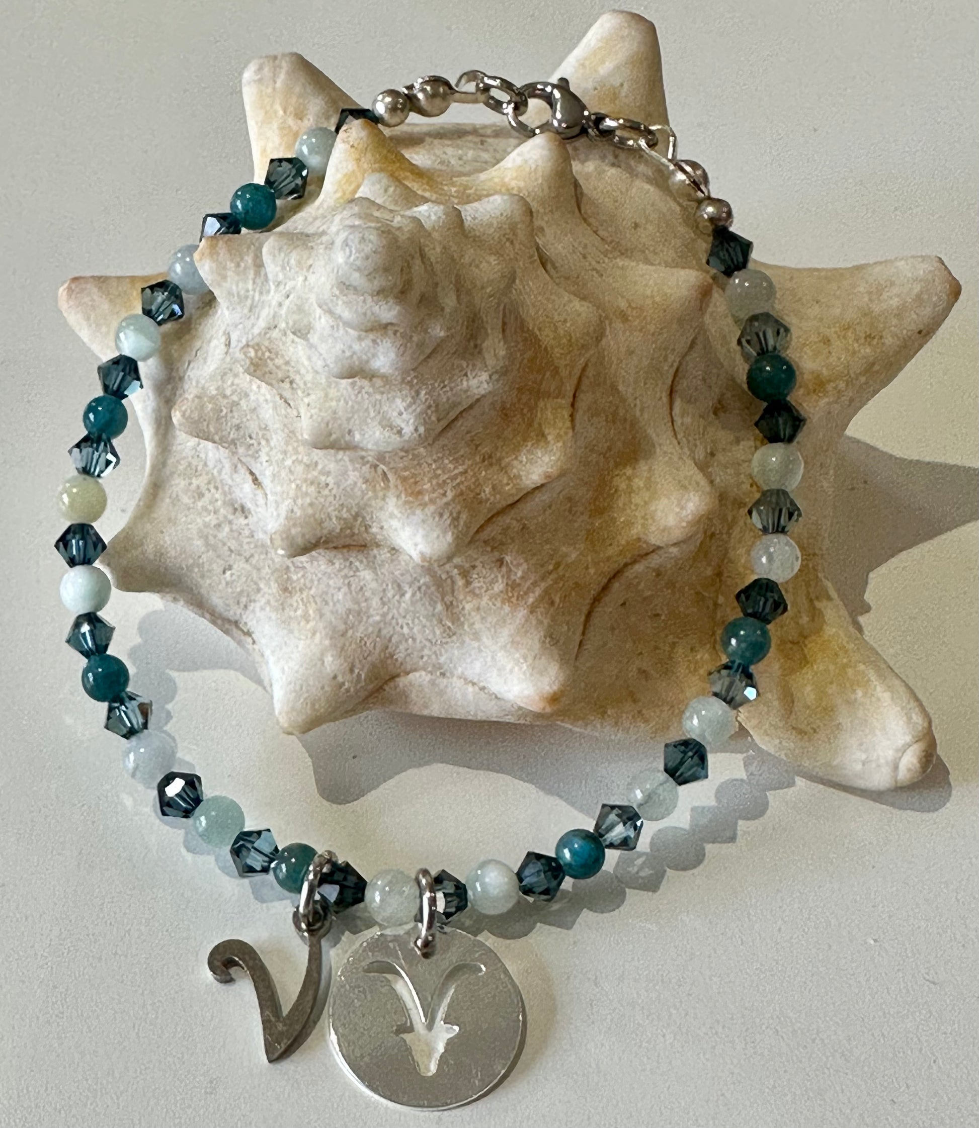 Bracelet avec pierres d'Apatite, Pierre de Lune, Aigne Marine et Cristal Swarowski